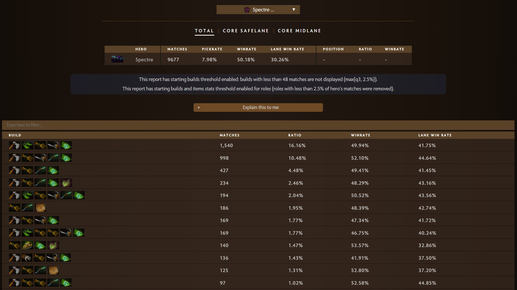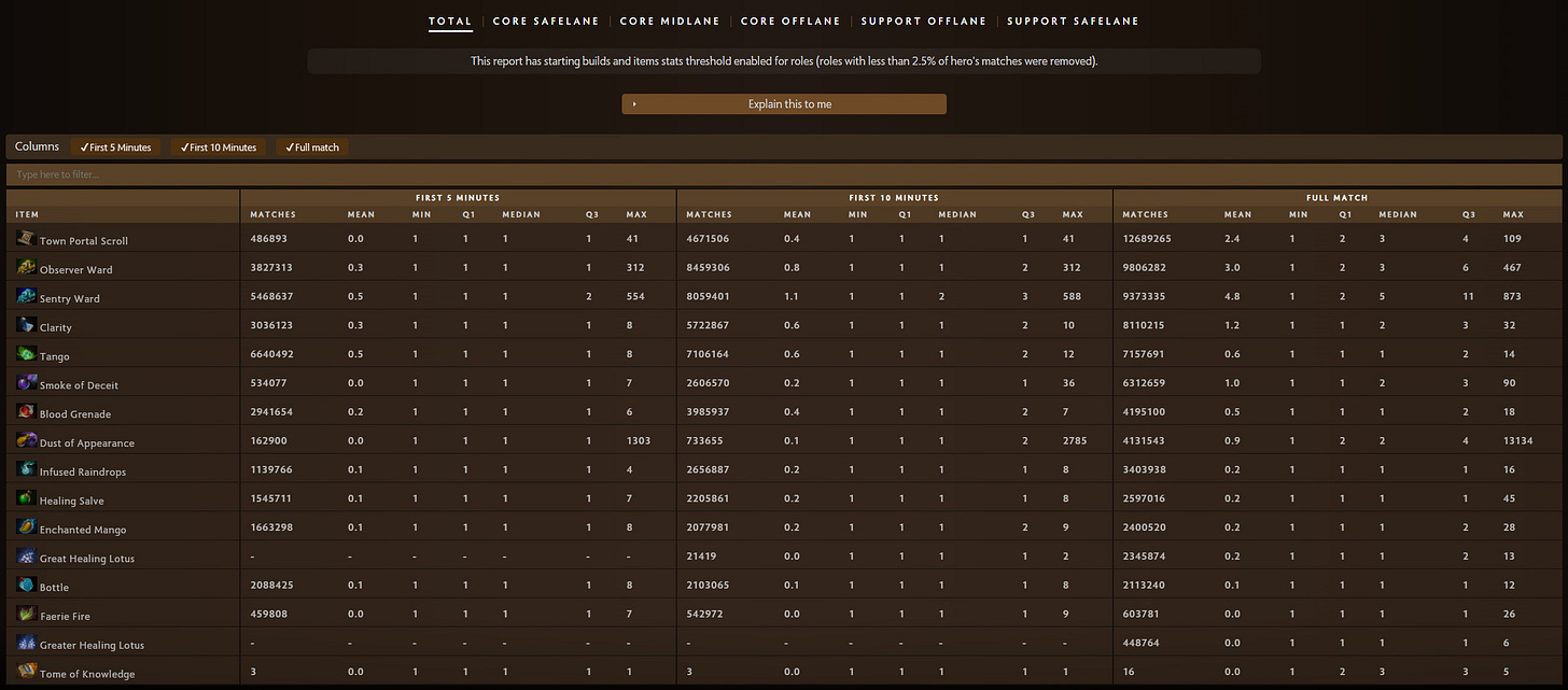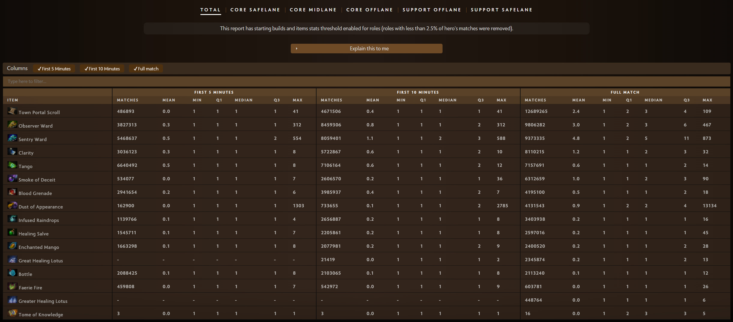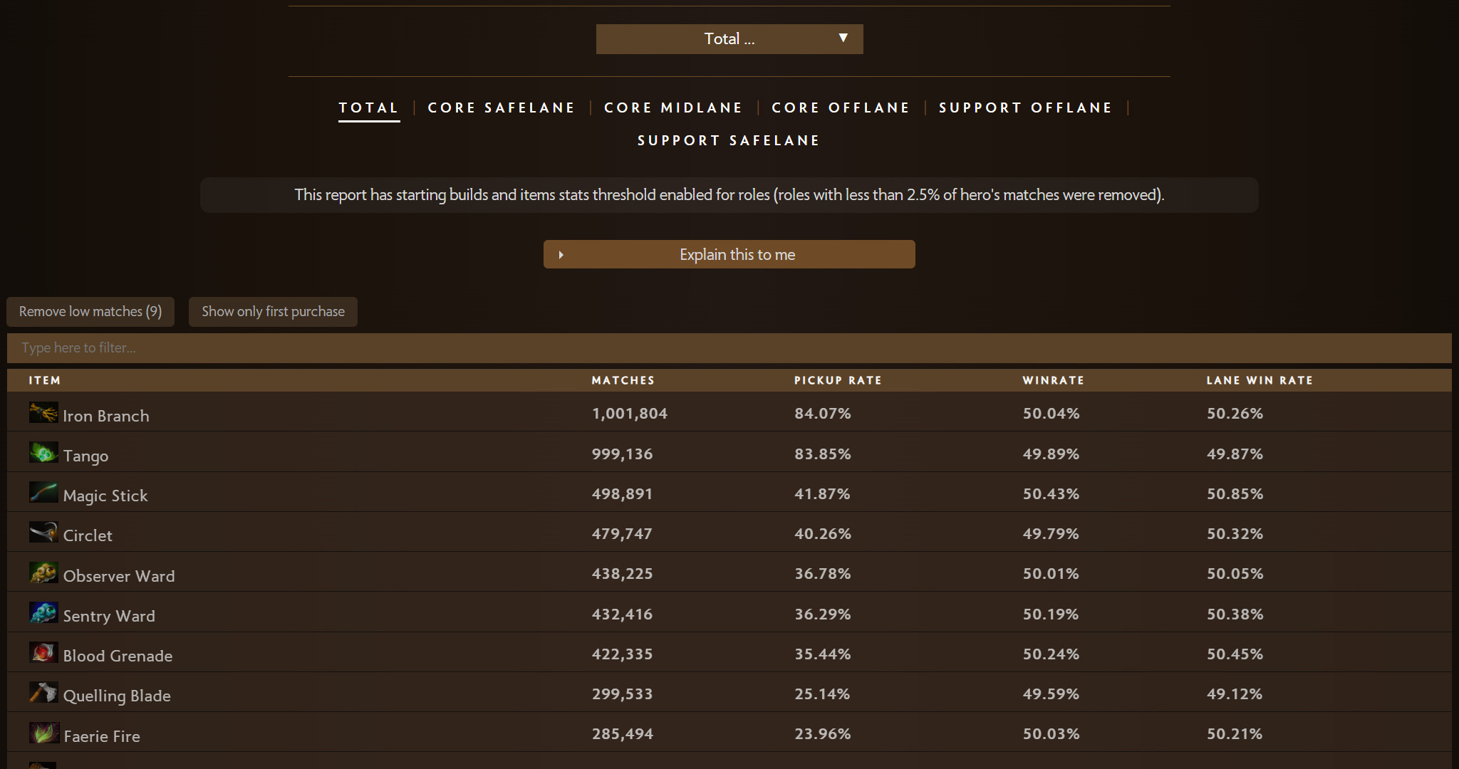 As for the stats hub, I finally able to finish and release Starting Items and Consumables feature (or rather the UI for it). Admittedly, it’s not that widely used as the most value from it might be seen by the pro players and researchers. But the main goal for it was to be used with the builds section. Another part of this puzzle is Skill Builds stats (with Ability Draft support), which is still in the works and even has a complete prototype, but I didn’t have the time to finish the UI for it yet.