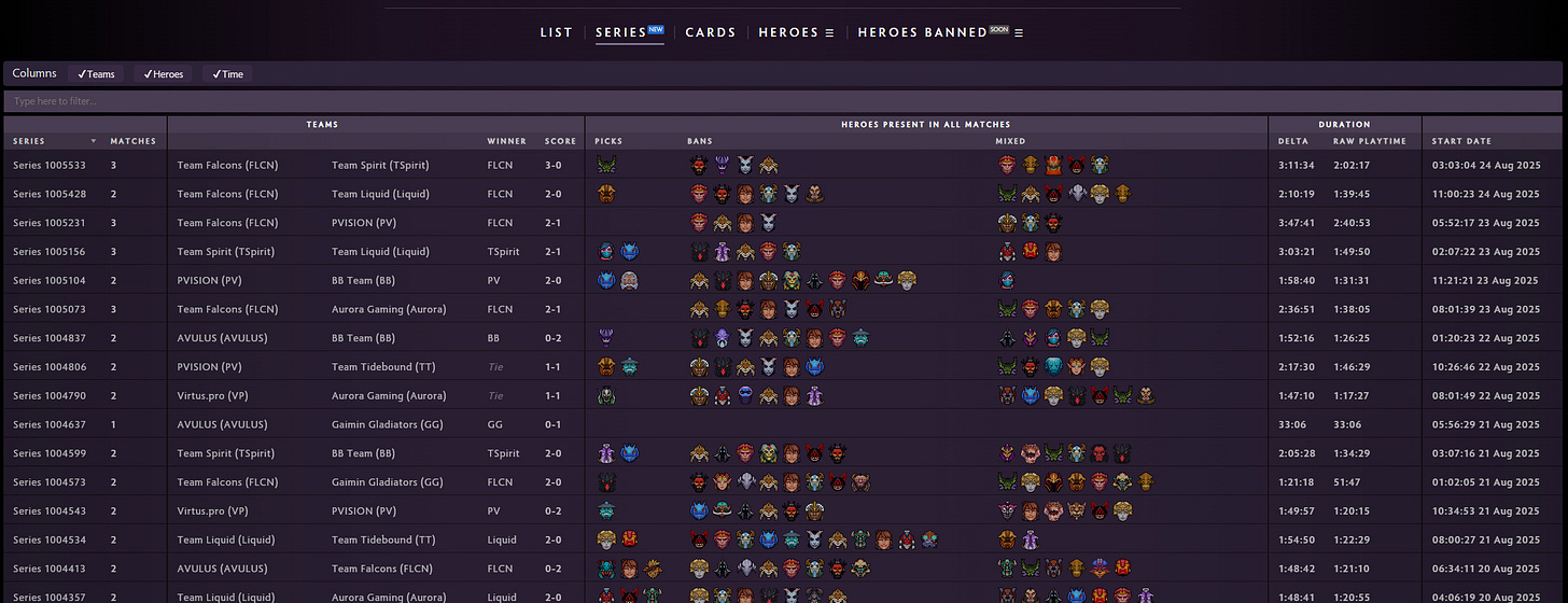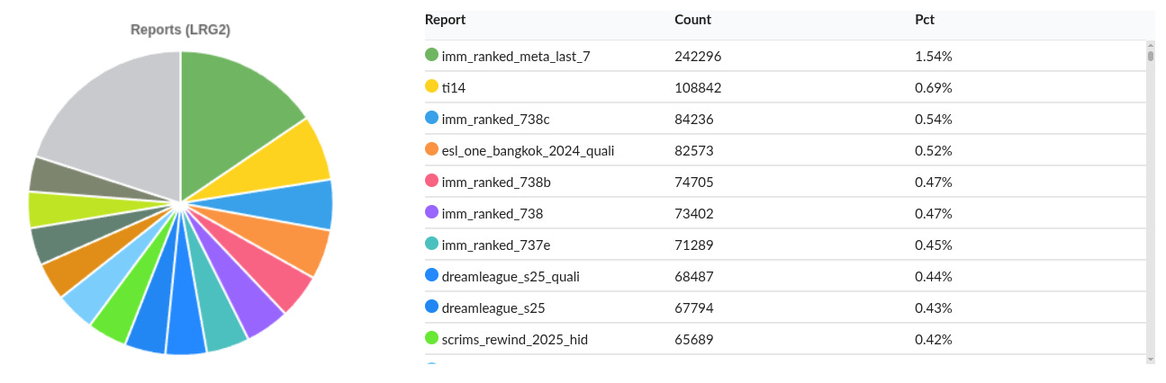 The most popular reports were, as expected, Immortal Ranked reports, TI2025, but also ESL Bangkok qualifiers and Dreamleague Season 25.